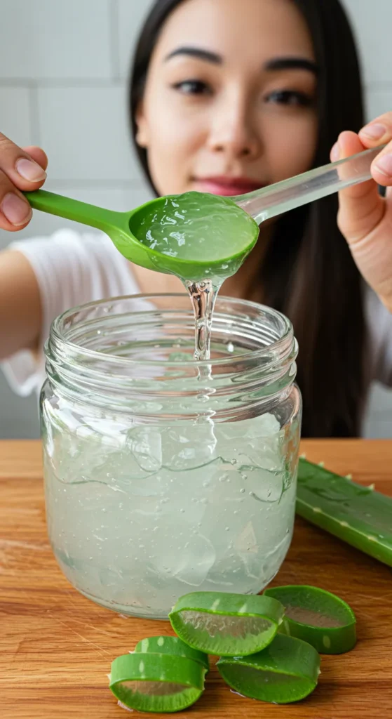 Making DIY aloe vera gel is so easy and fun! I slice open a fresh aloe leaf, scoop out the gel, and blend it smooth. It’s my base for masks, moisturizers, and serums.