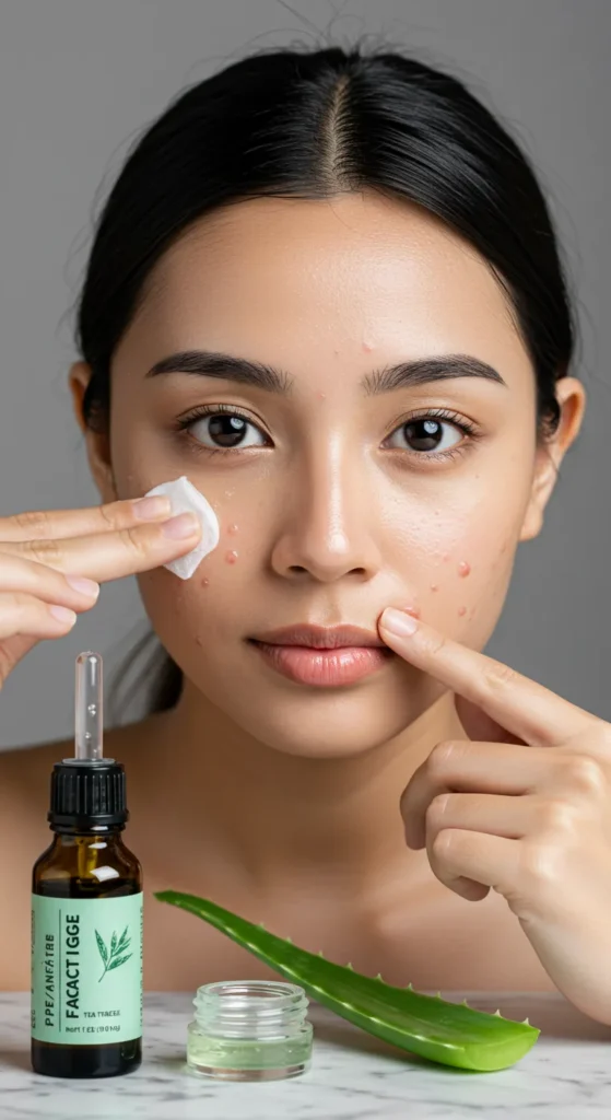 3. Treat with Aloe and Tea Tree: I dab aloe vera gel mixed with tea tree oil on breakouts to calm redness and fight acne overnight.