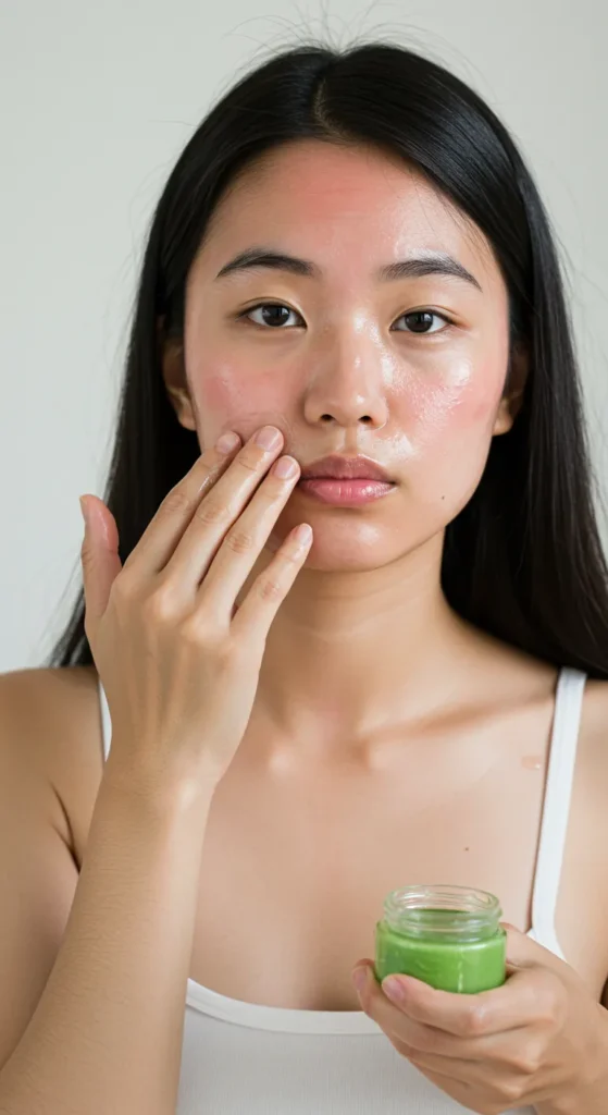 This mask is pure bliss for irritated skin. I blend aloe gel with mashed cucumber and apply it for 15 minutes. It cools and calms redness like magic.