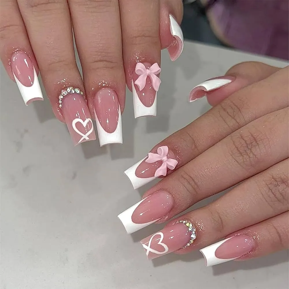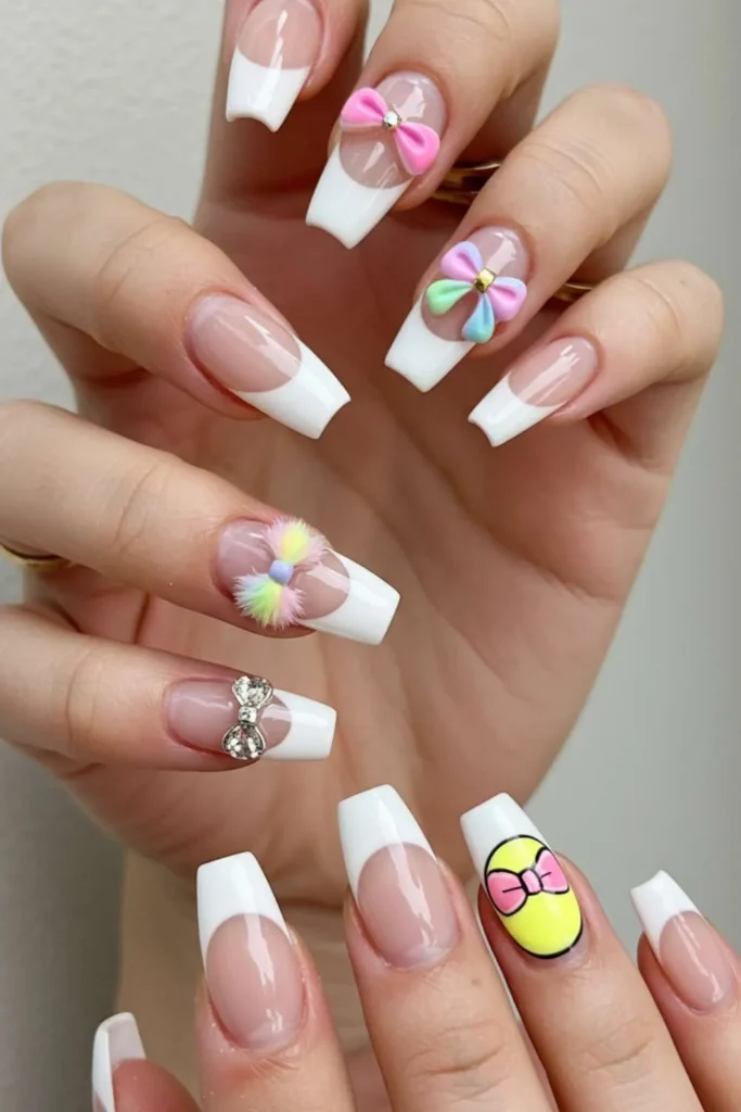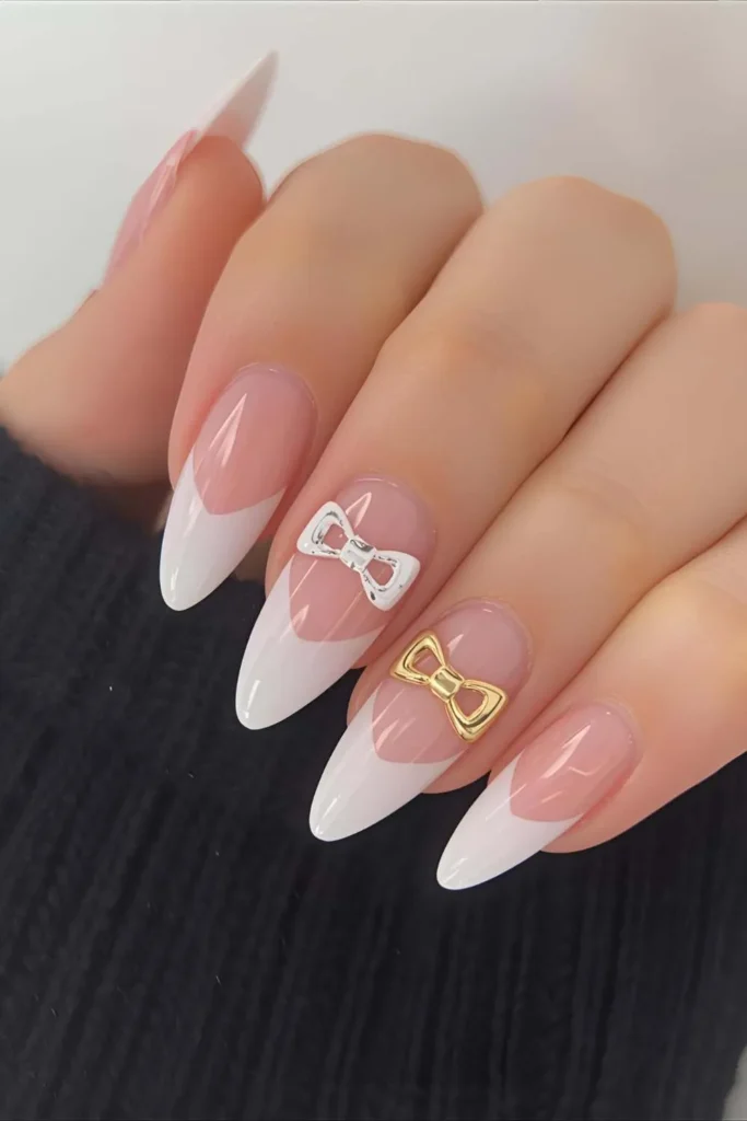 3. White French Tip Bow Nails