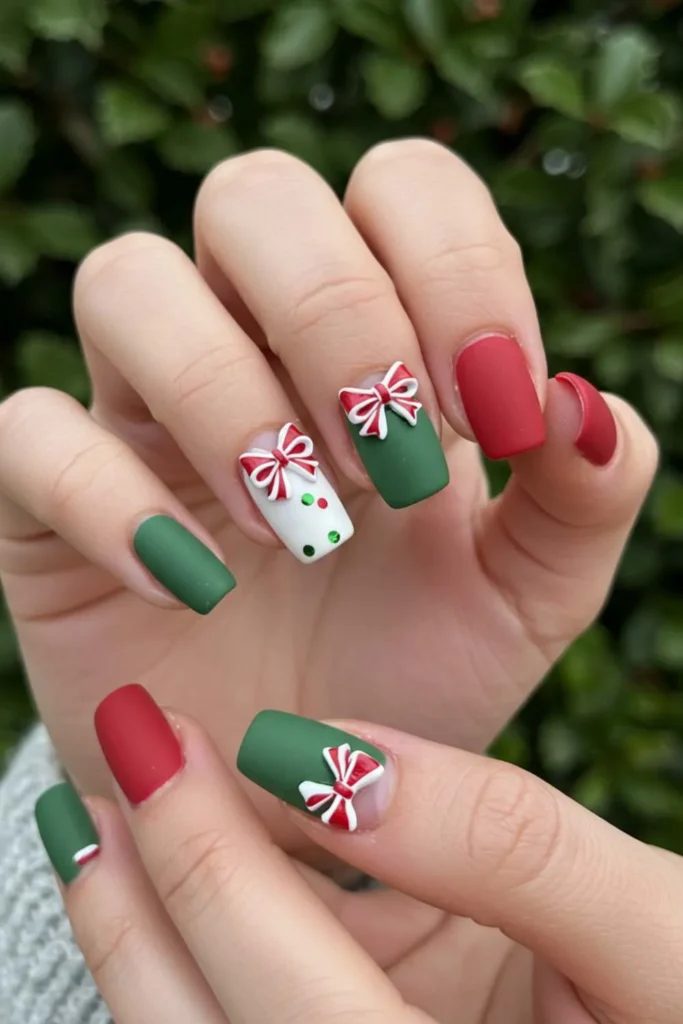 Matte bow nails are chic, modern, and oh-so-trendy. The flat finish gives your manicure a stylish edge that’s different from traditional glossy looks. Add a bow, and suddenly you’ve got a combo that’s both edgy and feminine.