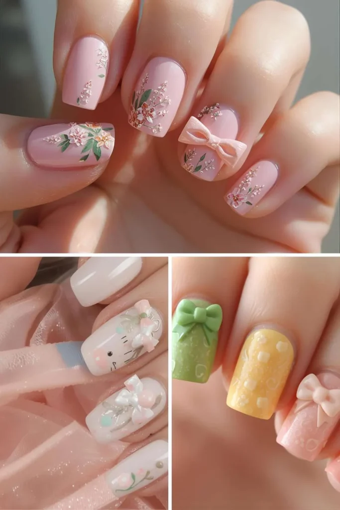28. Cute Cartoon-Inspired Bow Nails