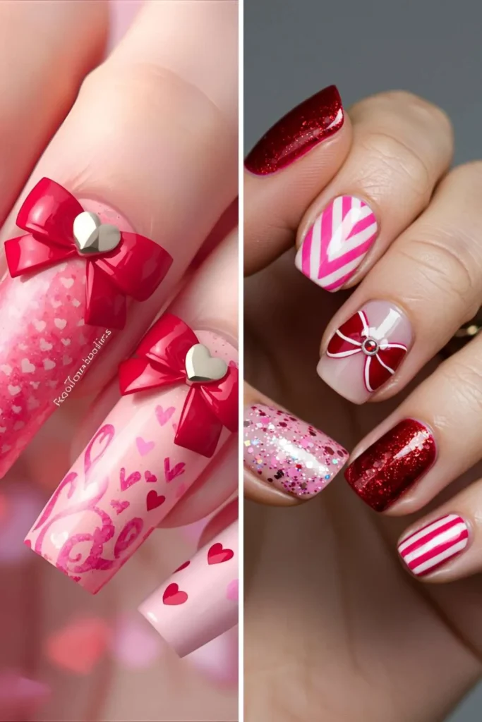 30. Bow Nails with Hearts