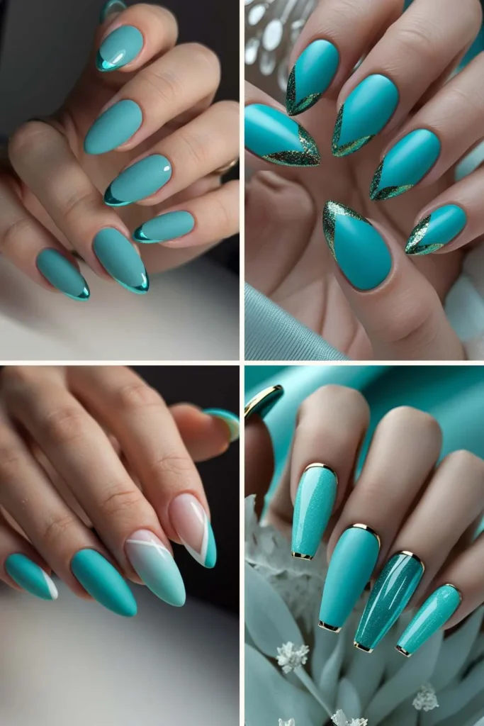 This is the sweet spot between turquoise and classic teal. A teal French manicure gives that pop of color without overwhelming your look. It works well on natural nails, acrylics, or gels, and you can even switch it up with metallic teal tips for a more glam effect.
